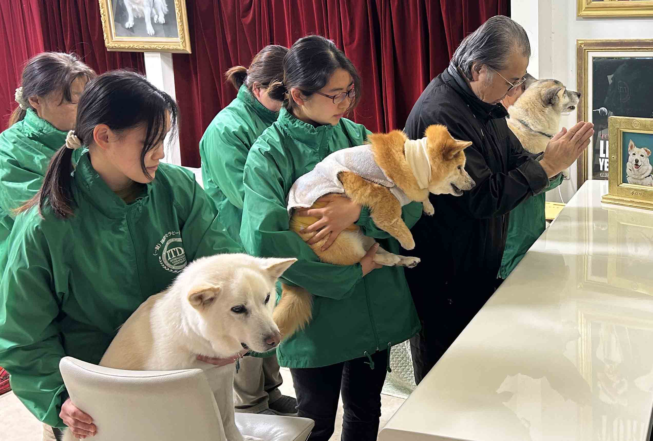 これまで多くの福島被災犬のセラピードッグたちが活躍し社会福祉に貢献をしてきました。その勇姿は絵画となり、そして天命を全うした犬たちの遺骨はクリスタルボールに収まり、この日皆で祈りを捧げました。