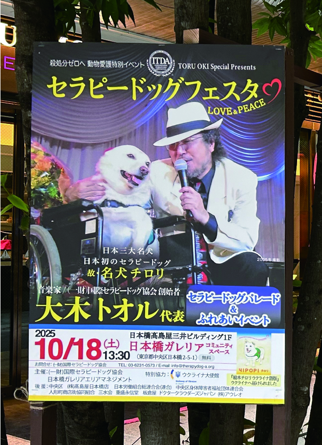 10月18日(土)、 大木トオル代表の動物愛護特別イベント「セラピードッグフェスタ2025 in 日本橋ガレリア」(東京中央区・日本橋髙島屋)が開催されました。当日は愛犬、愛猫家の方々をはじめ本当に多くの皆さんがお越しになり大盛況となりました。ご来場いただいた皆さまに心より感謝申し上げます。