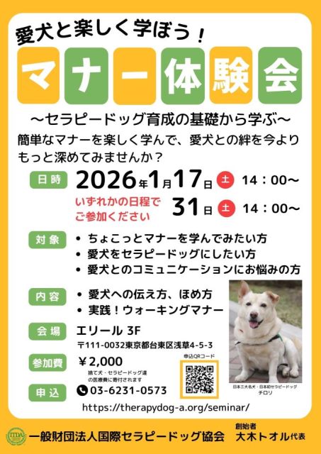 1) 申込フォームURL: https://therapydog-a.org/seminar/