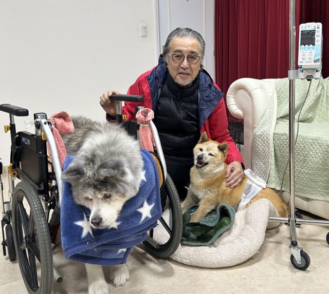 全盲の「秋姫」(左)と癌闘病中の「むさし」