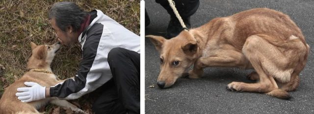 3.11大震災後、母犬が福島の山中に逃げ込み、その後数頭の子供を出産。内2頭は4ヶ月間山中で野犬として生き延び、その後行政により捕獲されました。しかし野犬ということで狭いケージの中で4ヶ月間入れられた状態だったため骨格が変形し不憫な姿になり、そして殺処分されることに。この情報を聞いた私はすぐに福島へ救出に入りました。