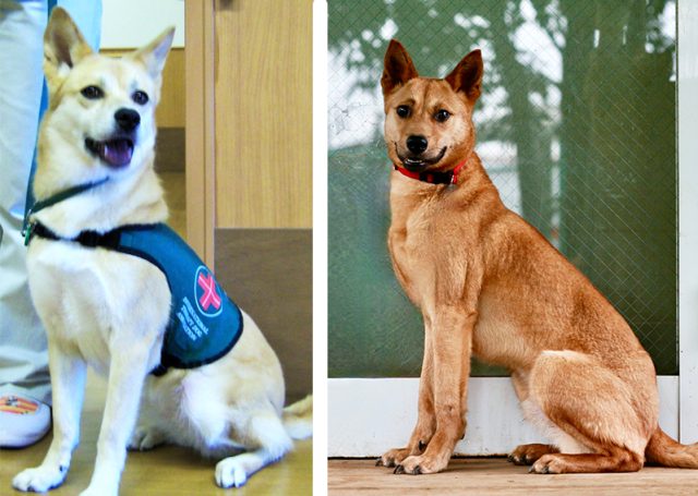 2頭は、妹「幸」(さち)と兄「福」と命名し、半年以上かけ健康回復に努め、ゆっくりと信頼を取り戻しました。そしてセラピードッグとして大活躍し、高齢者、障がい者の皆さんの心身のケアにあたりました。