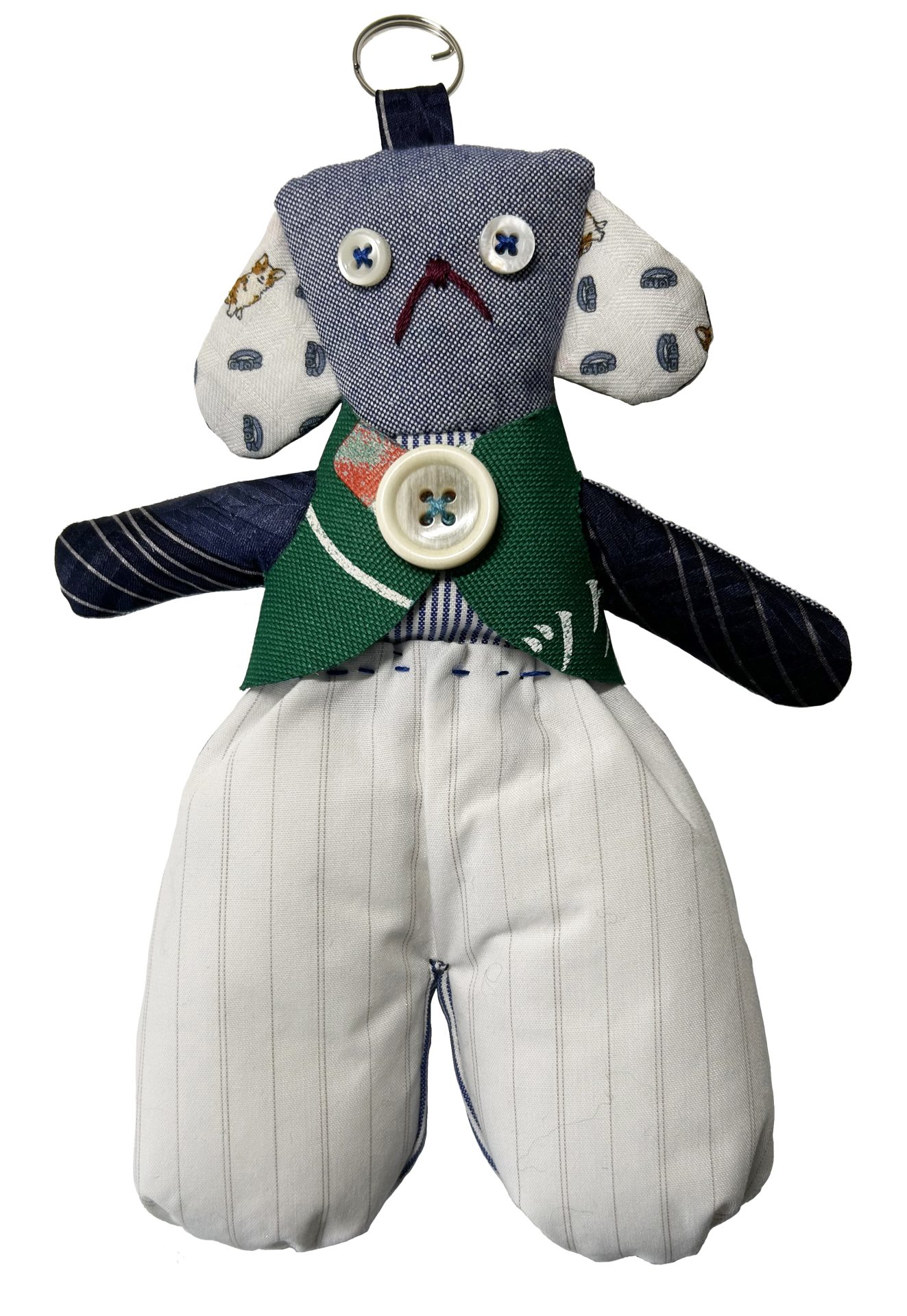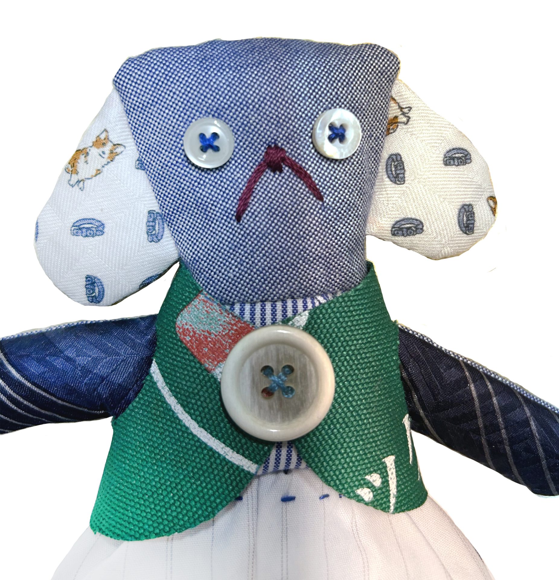大木トオルさんの4種類のコットンシャツ、シルクのネクタイ、犬のプリントのハンカチから作りました。
