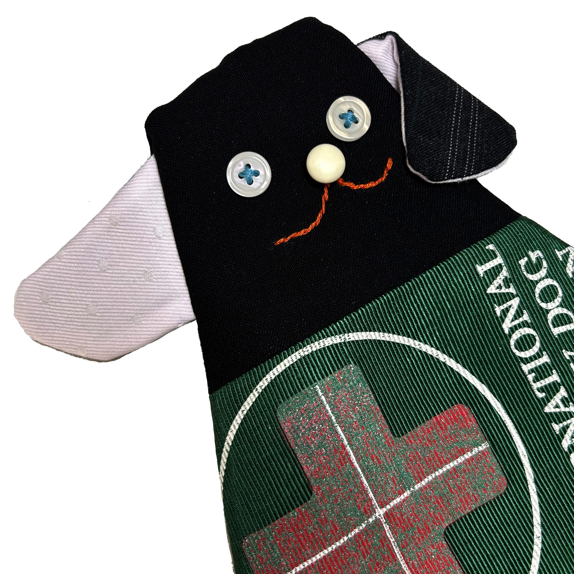 目にしたボタンはシャツのもの。鼻のボタンも、ヴィンテージの服から取りました。
